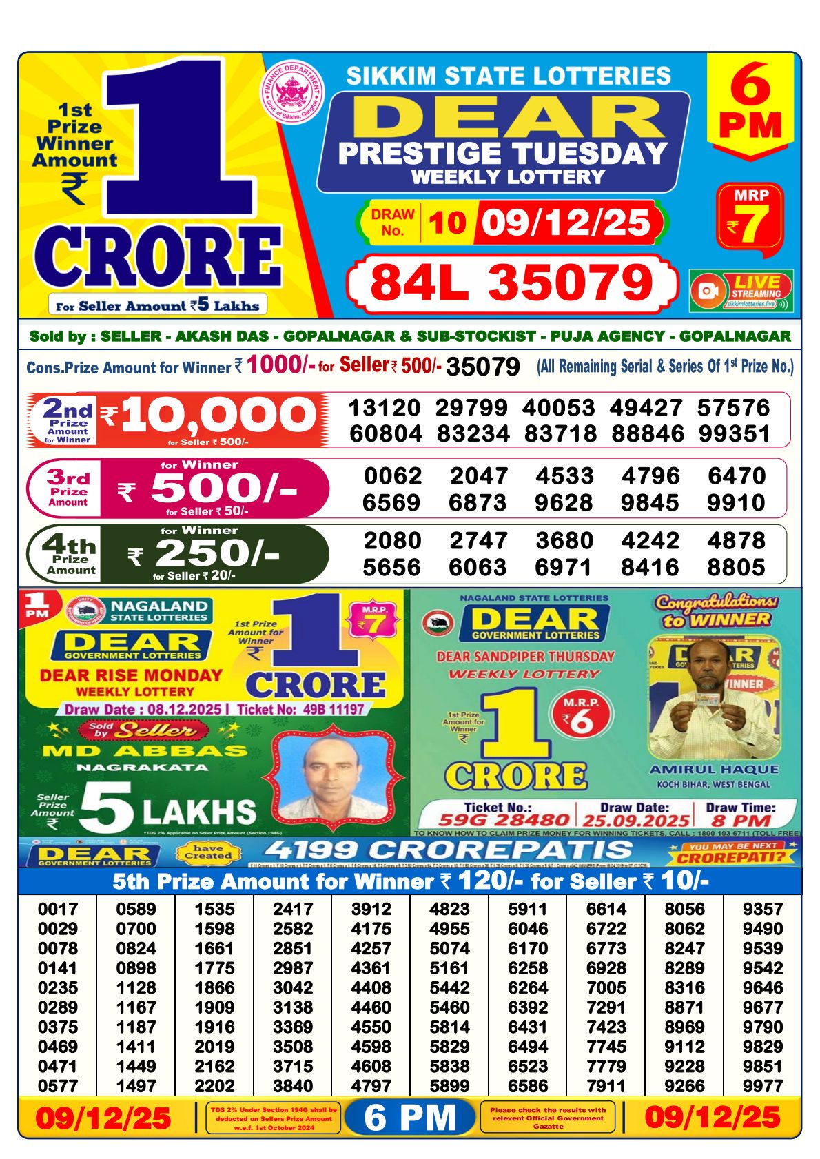 The 6 PM draw prize details are as follows: